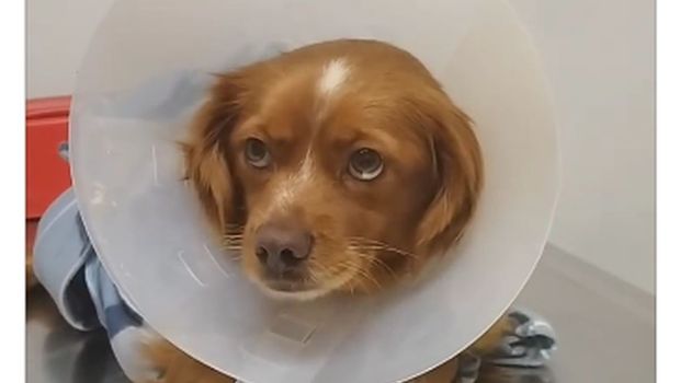 Reč je o Simki, ženkici nalik mešancu epanjoj bretona, koja je spasena nakon što je udario auto i slomio joj karlicu, pršljen i kukove.
