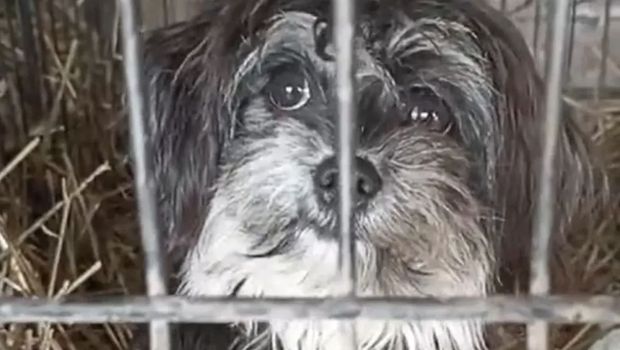 Mala 104 je slikana u kavezu iz kog je spasena. Sada živi u kući i ništa manje od toga ne sme dobiti.