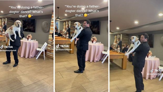 Video na kome vlasnik sa psom u naručju pleše uz hit grupe "ABBA" na svom venčanju postao je viralan i prikupio više od 250.000 pregleda na TikToku.