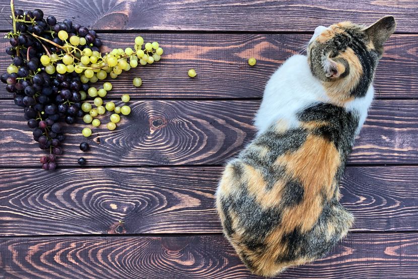 Mačke nikada ne bi trebalo da jedu sveže i suvo grožđe, iako je ono retko toksično po mačke: oko 15 posto mačaka i pasa doživljava trovanje nakon konzumiranja grožđa - suvog ili svežeg. Grožđe sadrži vinsku kiselinu koja može da izazove povraćanje, nemir i slabost, a mogu se javiti dijareja, letargija i gubitak apetita, u roku od 24 sata. Mačka može pokazati i teže znake trovanja povezane sa oštećenjem bubrega, kao što su prekomerna žeđ i mokrenje, gubitak apetita, napadi, loš zadah iz usta.