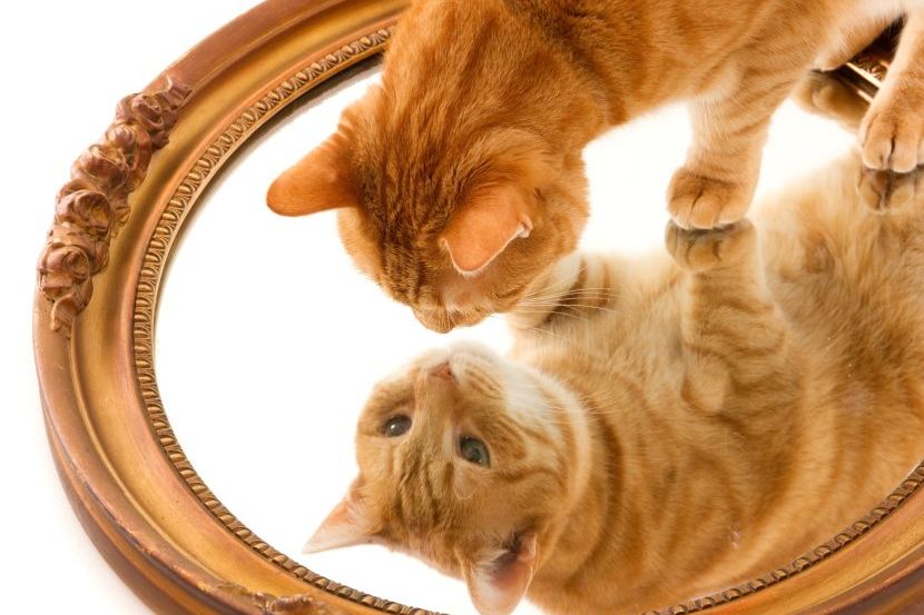 Reakcija mačke na sopstveni odraz u ogledalu varira od jedinke do jedinke. Neke mačke ignorišu sebe u odrazu, dok su druge radoznale i verovatno se pitaju zašto druga mačka nema nikakav miris!