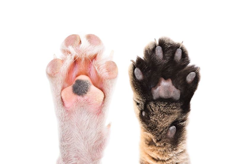 Jastučići šapa su prekriveni kožom koja je pigmentirana u različitim bojama, uključujući belu, ružičastu, crnu, sivu i pegavu.