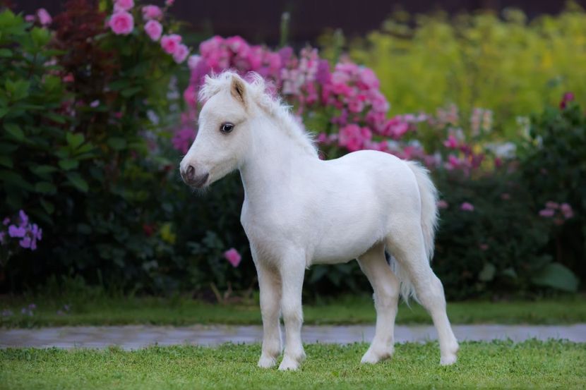 Šetlandski poni, rasa koja je nastala na Šetlandskim ostrvima u Velikoj Britaniji, nosi gen sabino 1 i može doći na svet u potpuno beloj boji. To je mala, ali snažna i izdržljiva životinja prijatnog temperamenta, što ga čini popularnim izborom za mlađe jahače. U prošlosti je imao ulogu pomoćnika u rudnicima uglja u Velikoj Britaniji i SAD.