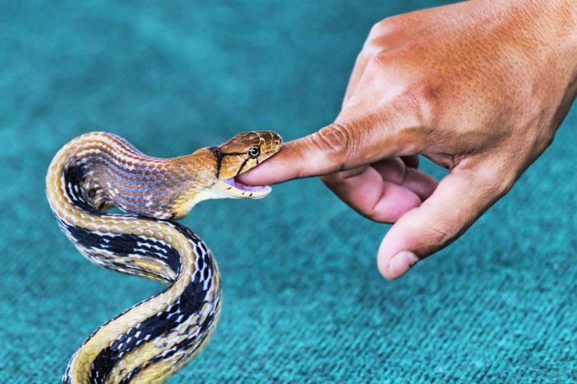 Sve vrste zmija mogu neočekivano da ugrizu ako se uplaše ili su preterano gladne. Izgladneli gmizavac će napasti plen koji je pred njim, a može i slučajno da ugrize vlasnika koji drži njihov obrok.