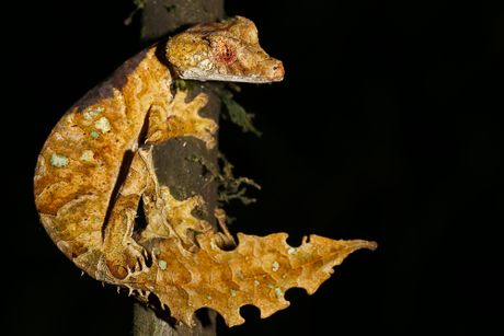 Satanski gekon sa repom u obliku suvog lista je neverovatni mali gmizavac sa Madagaskara, ostrva poznatog po unikatnim stvorenjima. Nazubljeni rep ovog malog guštera, poznatog po tome što je i omiljeni kućni ljubimac u svetu teraristike, liči na opali, truli list sa zarezima, pegama, pa čak i tragovima ugriza. Satanski gekon danju je potpuno miran i besprekorno se stapa sa okolinom, a noću "oživljava" i okretno lovi cvrčke, moljce i druge insekte. Uprkos svom svirepom imenu i jezivom izgledu, ovaj gekon je bezopasan i oslanja se na moć kamuflaže, a ne na snagu.