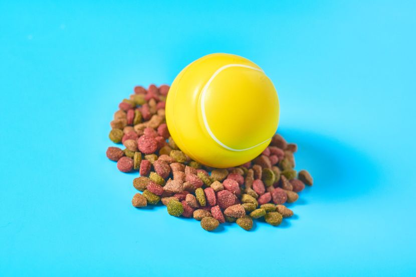 Ovaj prvi "uradi sam" način usporavanja hranjenja psa je najlakši, jer jedino što će vam biti potrebno je teniska loptica (ili neka druga loptica sa kojm vaš pas voli da se igra). Stavite hranu u činiju i ubacite lopticu unutra. Lopta bi trebalo da uspori psa i da mu omogući da sporije jede kako bi se pomalo posvetio i njoj.