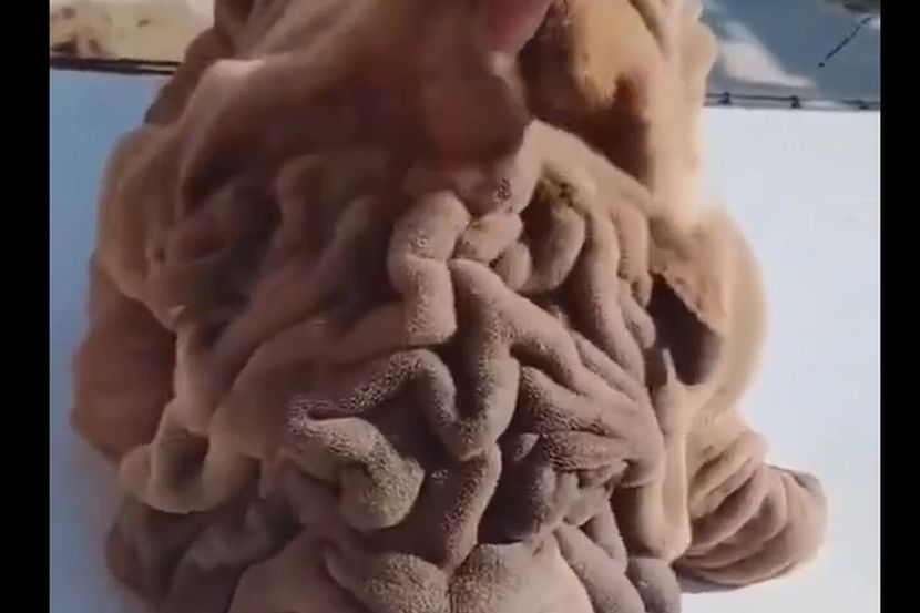 Na jednom snimku, koji je preuzet sa interneta i postavljen na društvenoj mreži Fejbuk, u grupi Psi su veći prijatelji nego ljudi, mirno leži neobična gomila nečega što podseća na zgužvanu i naboranu kožu. Poznavaoci rasa pasa i te kako dobro znaju o čemu je reč: u pitanju je mladi šar pej, drevna kineska rasa psa sa kožom koja "na gomili" liči na rasplinuti ljudski mozak!