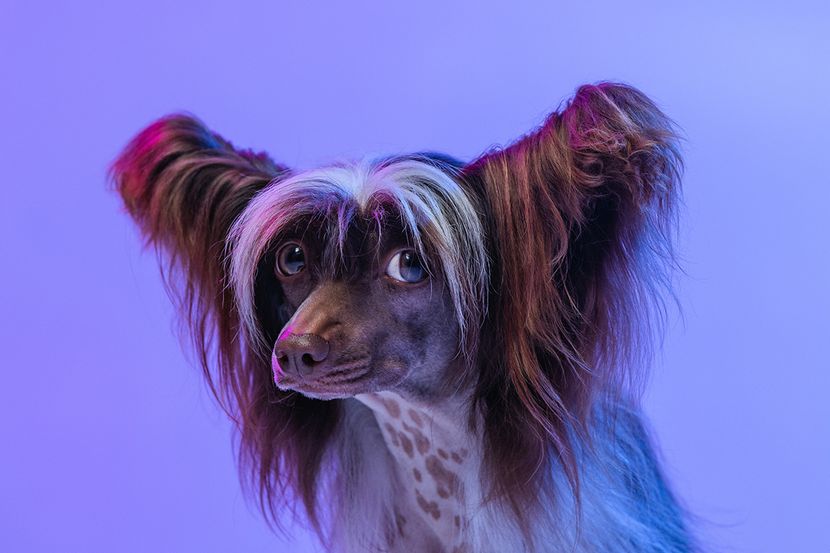Oči kineskog ćubastog psa su toliko tamne da izgledaju crno, a beonjače se gotovo ne vide.