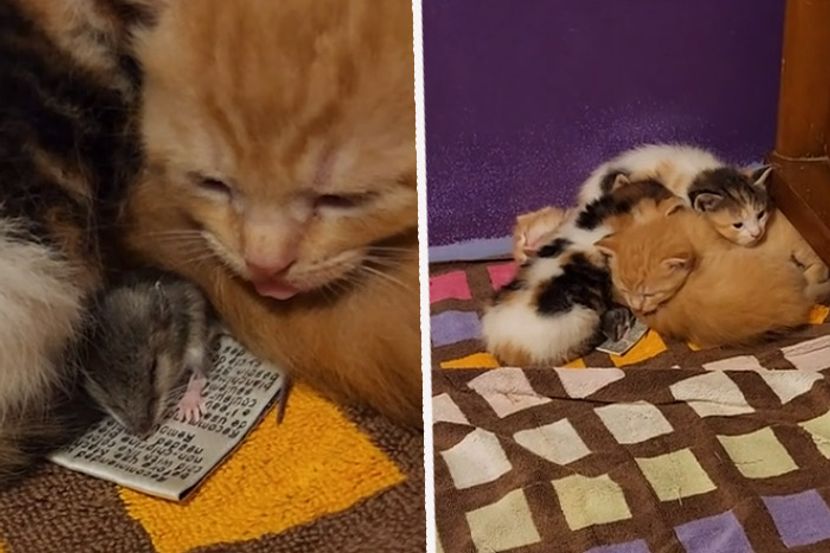 Novorođeni mačići usvojili sićušnog miša: U pozadini ovog dirljivog snimka krije se jedna opasna zamka