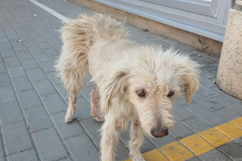 Kod marketa Aman u Boljevcu danima sedi pas, mala bela ženka, čupava, mršava, bolesne kože, krzna u fronclama.