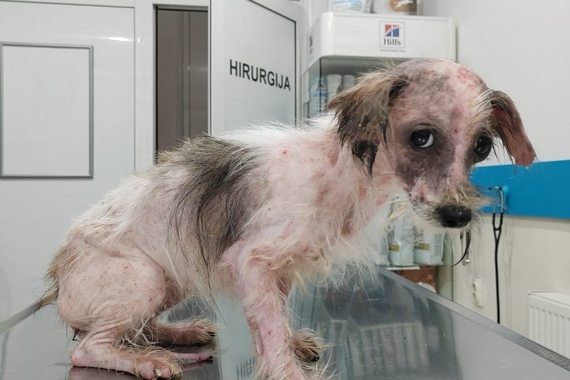 Jagodica, pas koji ima godinu, bila je teška samo 3,5 kg, bila je puna buva, krpelja, koža joj se perutala, nije imala dlaku i prekrivale su je kraste. Veterinari su utvrdili da je pozitivna na ušnog šugarca i babeziozu, ali negativna na demodeks, koronu, parvo i đardiju. Na klinici je skroz ošišana i okupana medicinskim šamponom, a dobila je i svu potrebnu terapiju za njeno trenutno stanje, specijalnu hranu zbog kože i lososovo ulje.