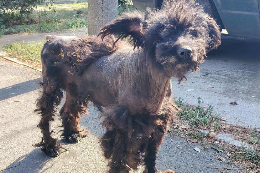 Psu doslovno očupana dlaka visi s tela, ali nije u pitanju samo njegovo krzno: pas je krmeljiv, sa izraslinama, hoda kao zombi i ekstremno je mršav.