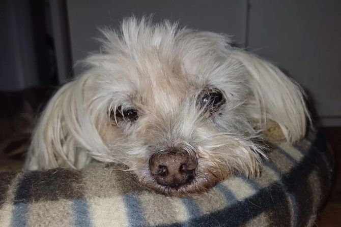 Danas je slep, gluv i gotovo bez zuba. Stalno smo kod veterinara... Ima gastritis, alergije i česte dijareje, pa je na posebnoj ishrani (ultrahypo). Ne vidi ništa više... Reaguje još samo na mirise i dodir. Njegov kutak je uvek isti – tamo gde se jedino oseća sigurno.