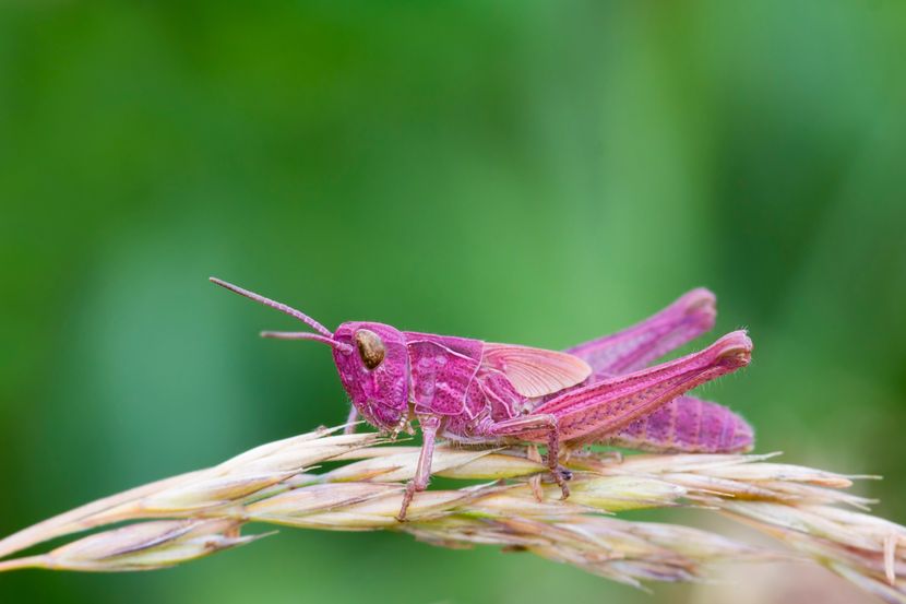 Ružičasti skakavci su rezultat genetske mutacije koja ih nažalost čini lakom metom. Viđaju se svuda gde su skakavci uobičajeni, iako ne tako često.