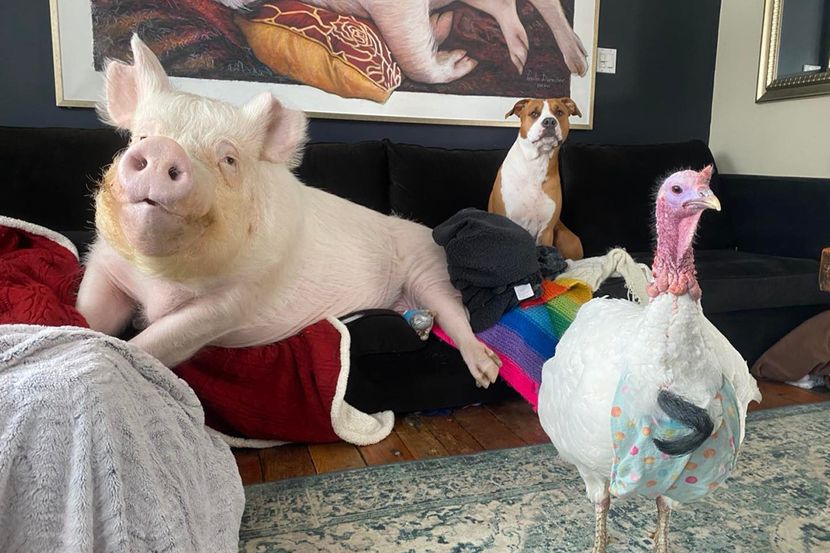 Svinja je živela u kući, jer je na to navikla, a uz nju su bili pas, mačka i ćuran, njeni najbolji prijatelji.