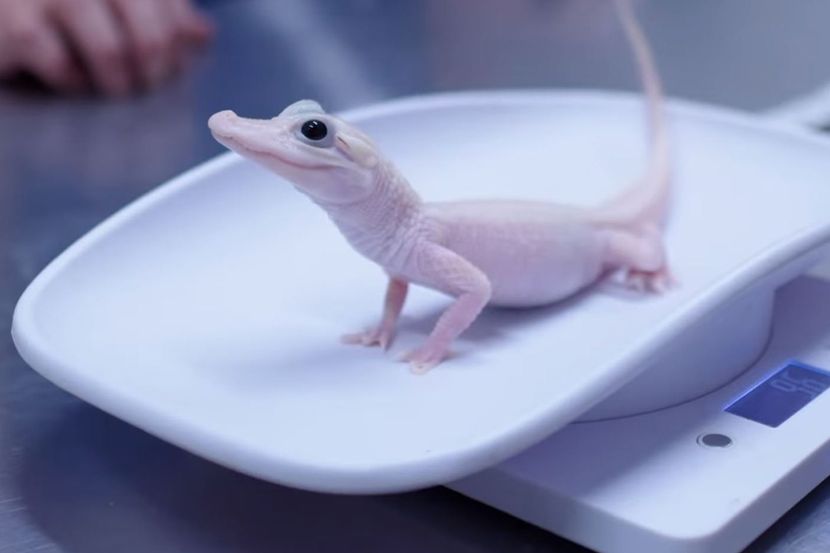 Pomalo sablasnog izgleda, ovaj mališan liči na albino jedinku, ali je zapravo još ređi oblik gmizavaca poznat kao leukistički aligator.