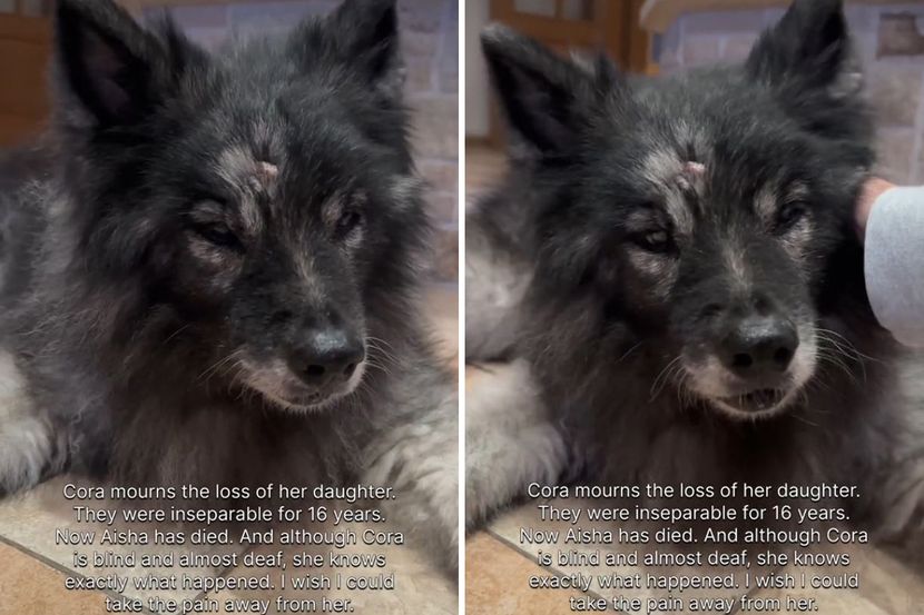 "Ajša je uginula, a Kora, iako slepa i gluva, tačno zna šta se desilo", objasnila je vlasnica u napisu na videu. "Volela bih da mogu da joj otklonim ovu bol".