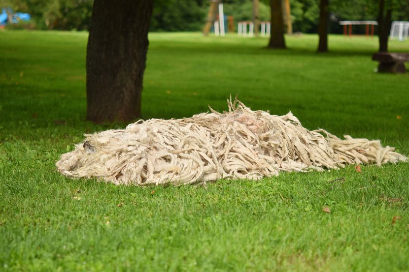 Ostali prolaznici, uključujući i vlasnike koji su šetali svoje pse, morali su da pobegnu kada je "Mop" trebalo da otrese blato nakupljeno na njegovim "dredovima".