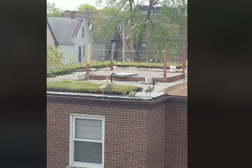 "Roditelji guske pokušavaju da nateraju svoju decu da skoče sa ove trospratnice", objasnila je Tifani iza kamere. Ona kaže da se svake godine dešava isto: odrasle guske skaču sa krova zgrade, a onda pozivaju svoje bebe da ih slede, ali to ne funkcioniše uvek.