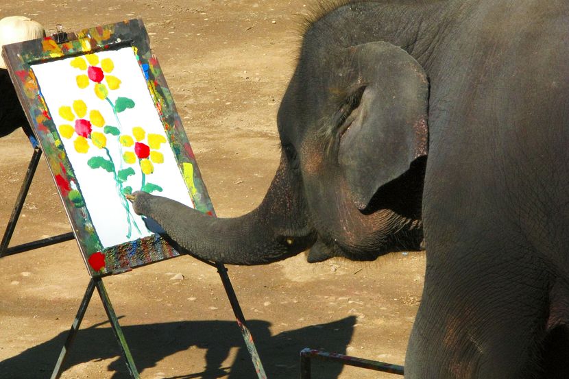 Verovatno se gledali video snimke na društvenim mrežama u kojima se prikazuju slonovi koji surlom uzimaju četkicu, umače je u boju, i pokušavaju da naprave slike koje, na kraju, liče na umetnička dela petogodišnjeg deteta.