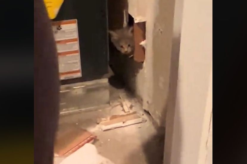 "U snu ne bih pomislila da je reč o mački", izjvila je Šana za Thedodo. Znala je da mora brzo da reaguje, jer živi u Novom Meksiku, a temperatura vazduha raste iz dana u dan, pa je brinula da će se mačka ugušiti od vreline u zidovima. Zato je pozvala u pomoć komšiju koji je otvorio rupu u zidu kako bi uplašeno mače moglo da izađe.