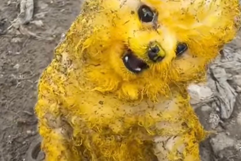 Mali jarkožuti pas nije lik iz crtanog filma, niti ga je neko pripremimo za izložbu najluđe ofarbanih ljubimaca. Ovaj mališan ima jednu od najtužnijih sudbina kuce koja je imala udoban dom i bila voljeni ljubimac, ali je potom odbačena, zbog povrede i nevolje u koju je upala.