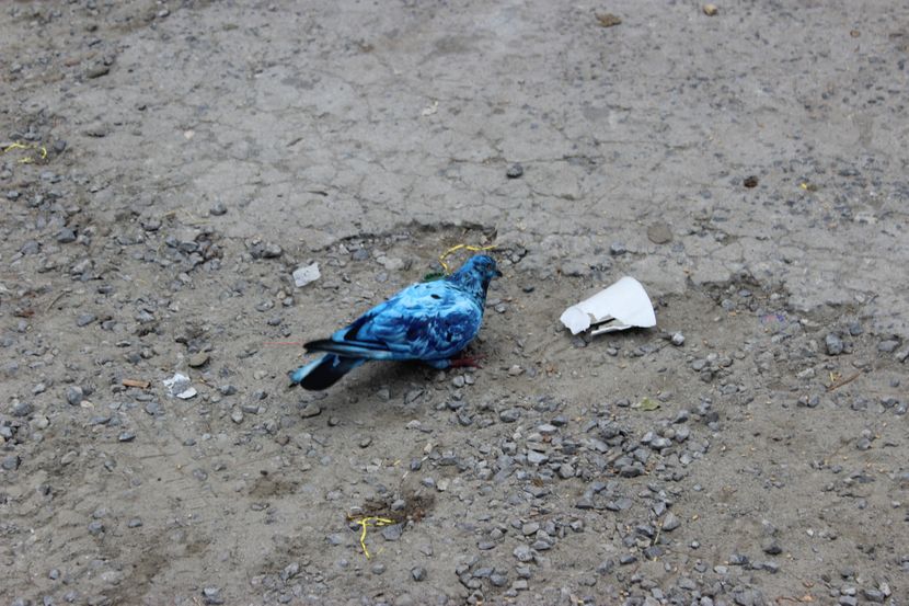 "Boje i farbe su veoma toksične za ptice i druge životinje koje bi verovatno pokušale da očiste takve materije sa svog krzna ili perja tako što bi ih polizale i progutale", tvrdi Rebeka i dodaje da se sumnja da je perje ovog goluba ofarbano. To je nažalost sve popularnije na događajima kao što su zabave za otkrivanje pola budućeg deteta.