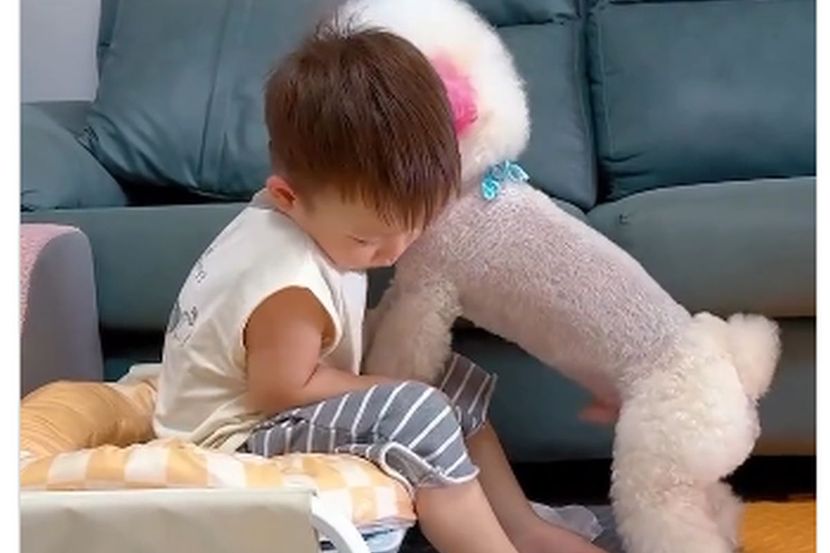 Snimak koji topi srca sa Instagram naloga yonghui9913 prikazuje dečaka koji tužno plače, a ispred njega stoji njegov divan beli pas ružičasto obojenih ušiju i saoseća s njim.
