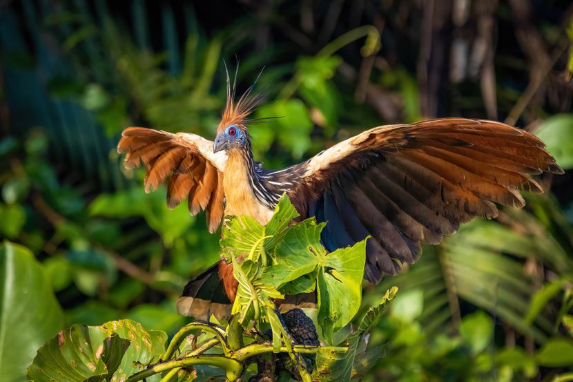 Hoacin je težak 700-900 g i naraste do 62-70 cm, liči na fazana i ima dugačku čekinjastu ćubu, piše Discoverwildlife. Crno, crvenkasto i krem perje deluje dekorativno, ali ne i elegantno na ovom pernatom čudu velikih krila i repa, sa čijeg lica ne silazi izraz zapanjenosti.
