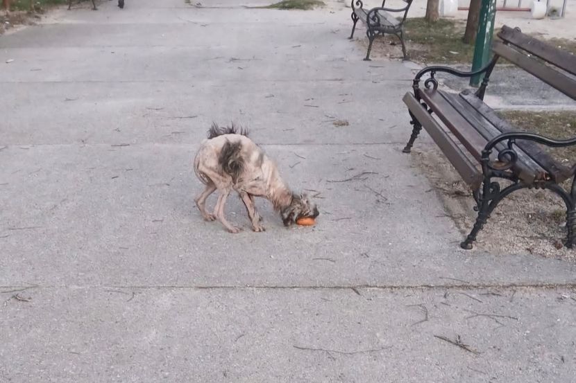 Psu je neophodan pregled kod veterinara, ne samo zbog teškog stanja njegove dlake od koje je ostalo samo nekoliko čuperaka, već i zbog kompletnog zdravlja.