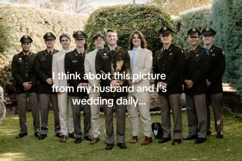 U videu na svom TikTok nalogu @ollieandoscarweenies, ona je objavila fotografiju Džeka i još devet muškaraca, kako poziraju pred kamerom u odelima i uniformama. A onda zum: skriven, između svih parova nogu, bio je sićušni Oli, u svom majušnom smokingu.