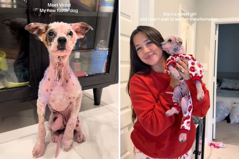 Svaki napušteni pas ima svoju priču: neki bude spasen za samo nekoliko dana, dok drugi pati duže, a jedan mali pas iz Teksasa dugo je čekao da ga pronađe Služba za kontrolu životinja Montgomeri koja ga je odvela u azil za životinje. Psu je pomoć bila očajnički potrebna, jer ga je napala šuga, bio je mršav i izgubio većinu dlake, a na telu je imao čuperke ljubičastog krzna. Zahvaljujući boji dlake kuca je nazvana Vajolet: njena hraniteljka posumnjala je da je obojenost nastala zbog reakcije na lek namenjen lečenju stoke koji su bivši vlasnici verovatno davali psu.