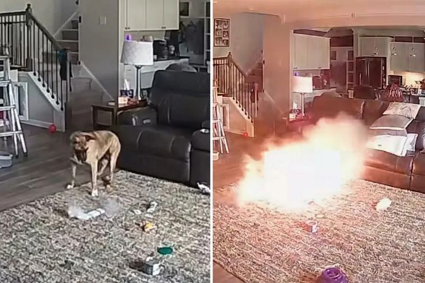 Kućna kamera zabeležila je trenutak kada je pas zapalio kuću u kojoj živi, jer je glodao bateriju! Zapanjujući snimak prikazuje psa Koltona kako žvaće litijumsku bateriju u dnevnoj sobi i kamera hvata trenutak kad se zapalio tepih, ali je požar brzo ugašen.