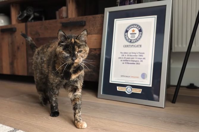 Mačka Flosi, zvanično priznata kao najstarija živa mačka na svetu, upravo je proslavila svoj 30. rođendan! Rođena u decembru 1995. godine, mačka Flosi, zvanično priznata kao najstarija od strane Ginisove knjige rekorda, proživela je tri decenije mirnih, običnih dana, a započela je život u blizini bolnice Sent Helens u grofoviji Mersisajd u Velikoj Britaniji. Flosi je dugo menjala domove pre nego što je 2022. godine završila kao štićenica dobrotvorne organizacije "Zaštita mačaka", a potom je udomljena i danas živi sa vlasnicom Viktorijom Grin u Orpingtonu, Engleska.