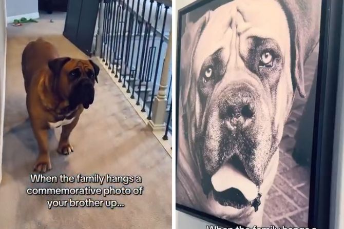 Porodica sa dva psa, koje je gotovo istovremeno dovela u dom, odlučila je da okači u hodniku svoje kuće sliku ljubimca koji je uginuo od kancera, ali niko nije mogao da pretpostavi koliko će ona emotivno pogoditi njegovog brata.
