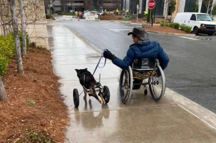 Bandit konačno našao dom: Odbačen pas u kolicima skućio se kod čoveka koji vodi istu životnu borbu