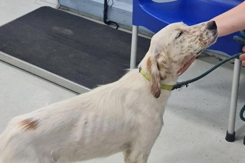 Ira je štene engleskog setera retke boje limonbelton, stara oko 8, 9 meseci. Ona je tiha, mila, dobra i kako kaže autor objave, "vozila se kao sklupčana tačkica na prednjem sedištu, sitna, mala, mršava..."