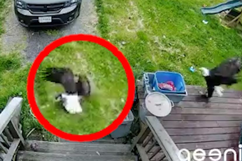 Na snimku se vidi kako je orao udario u kantu u pokušaju da poleti sa plenom, što je možda i uticalo na to da posle samo par sekundi ostane bez ručka.
