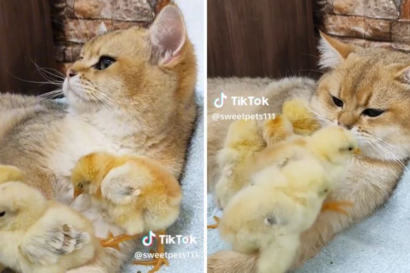 Video snimak mačke koja čuva i miluje piliće oduševio je internet korisnike širom sveta, prenosi Index.hr.