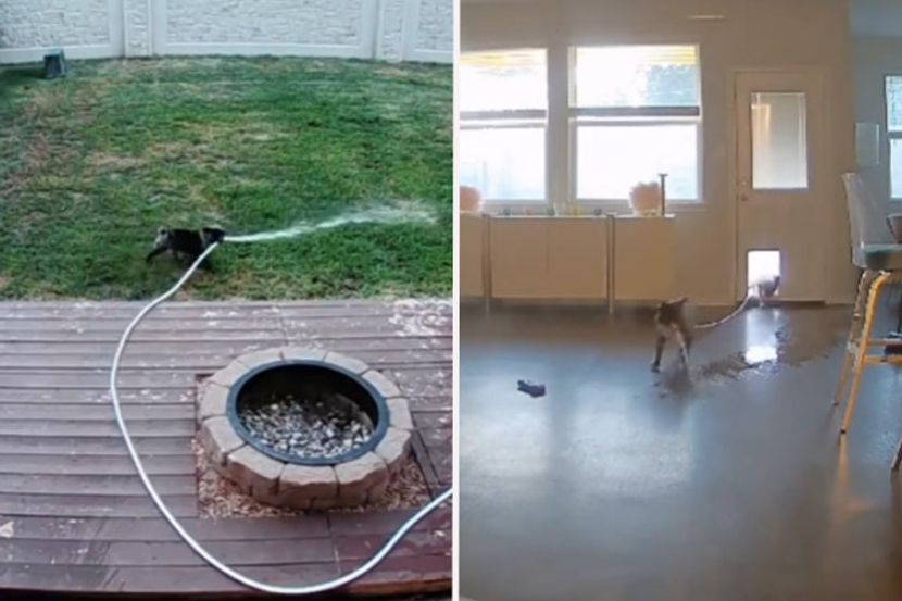 U snimku koji je objavljen na TikTok profilu @house_of_camille vidi se kako Lula kroz vrata za pse uvlači baštensko crevo i počinje da zaliva sobu!