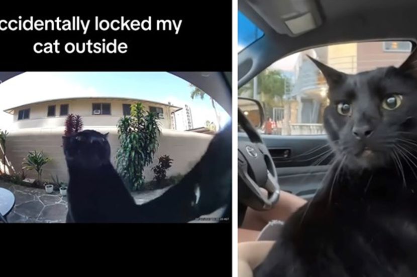 Duhovita reakcija unezverenog mačka ispred kućnih vrata koje je vlasnica slučajno zaključala