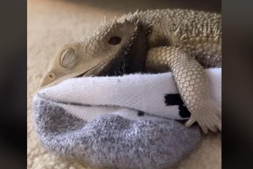 Njegov bradati zmaj Persi uživa u ljubavi sa čarapom, a sve se lepo vidi na snimku!