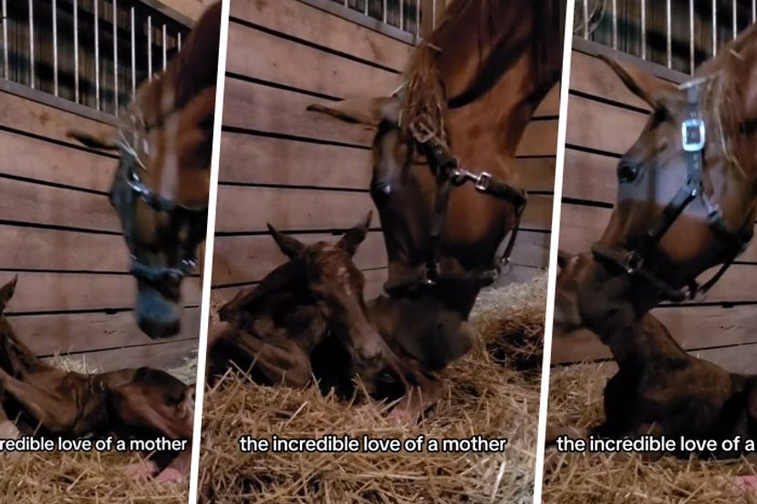 Nakon što se oždrebila, mama kobila brižno je čuvala svoju bebu, a očevici su ovekovečili trenutak kad ona razgovara sa tek rođenim ždrebetom!