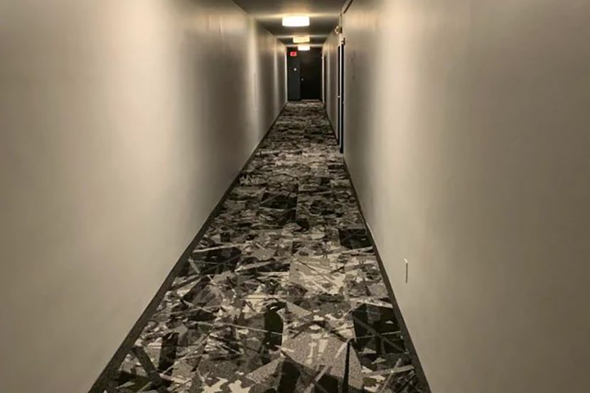 Na fotografiji je prikazan dugačak hodnik, a vlasnica tvrdi da na tepihu sedi njena mačka.