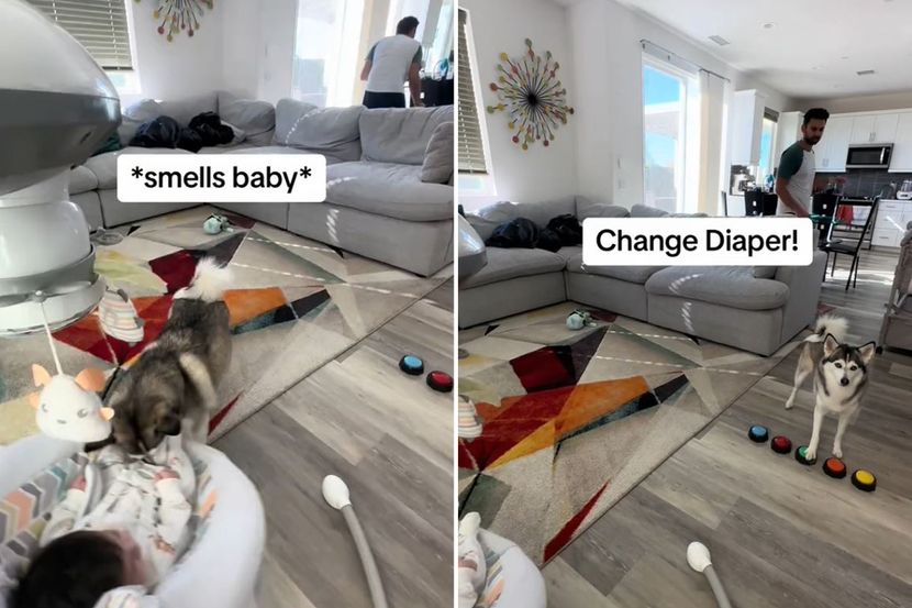 Na snimku, koji su Safini vlasnici podelili na profilu @sapphie_the_pomsky, vidi se kako kuca njuška bebu. Ona potom odlazi do dugmića na podu preko kojih komunicira sa svojim ljudima, prenosi Index.hr.