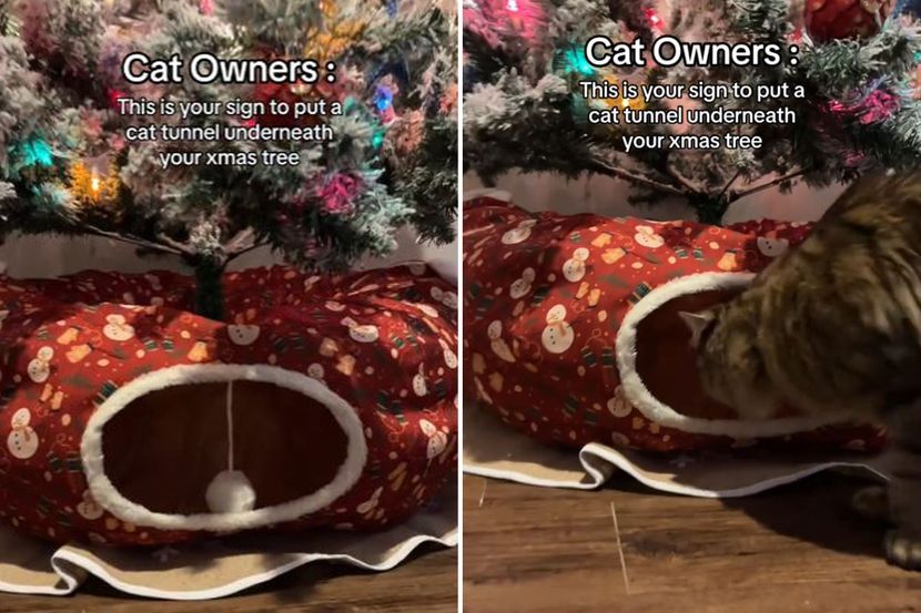 Ona je oko jelke postavila tunel za mačke.