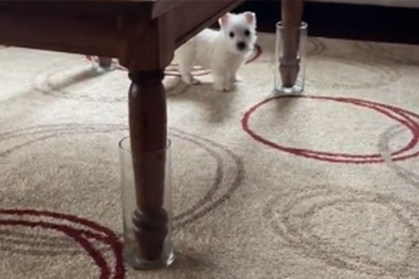 "Kad vaše štene počne da gricka nogare stola, vreme je da postanete kretivni", kaže on u video snimku koji je postavio na profilu @evie_my_westie.
