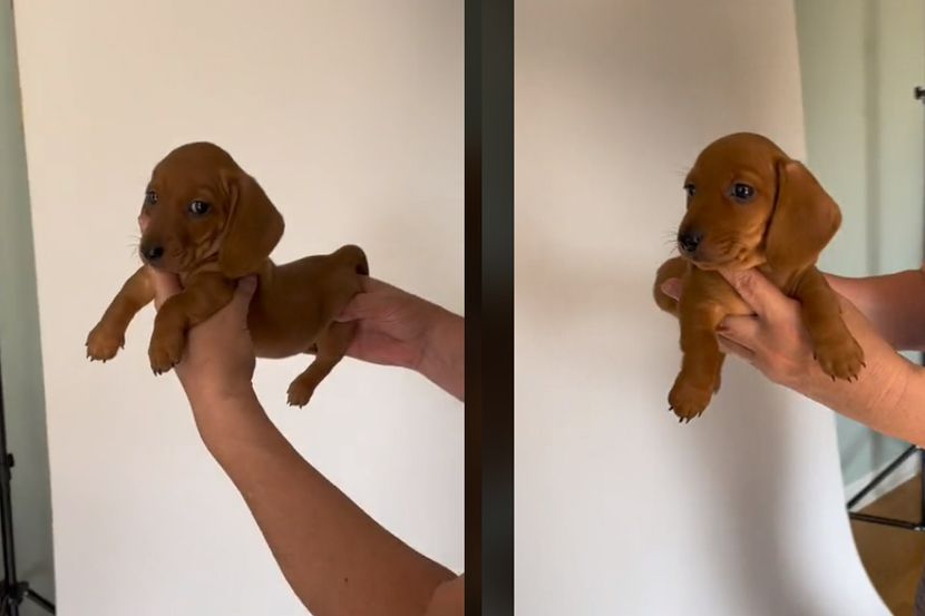 U samo pet sekundi ljubitelji pasa sa čežnjom prate malog psa koji pozira u rukama vlasnice.
