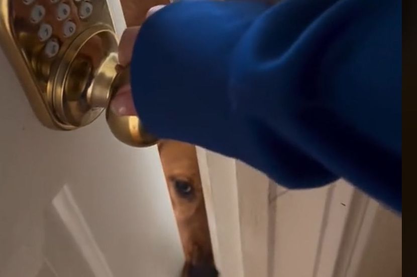 Na TikToku je objavljen fenomenalan video zapis psa koji se trudi da zadrži vlasnicu tako što kao zadršku vratima koja treba da se zatvore koristi - njušku!