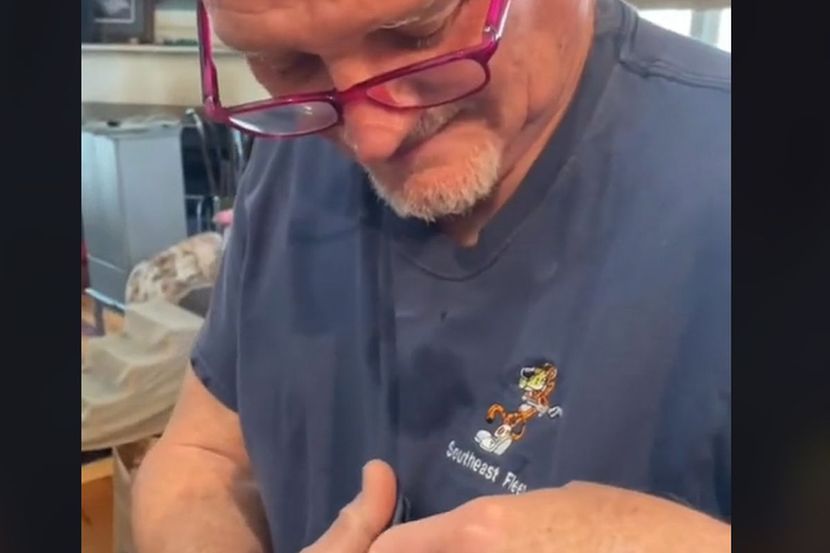 Na snimku koji je pre tri dana osvanuo na TikToku, na nalogu @hoest, vidi se stariji muškarac koji u džepu majice drži nešto dragoceno i ubrzo pokazuje šta krije u ovom malom ali sigurnom utočištu.